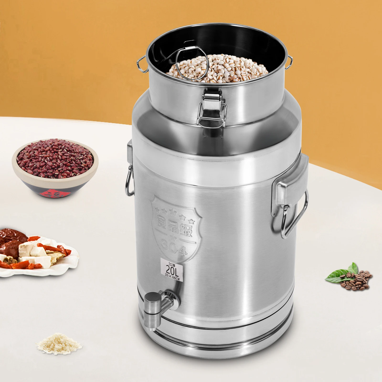 Our beverage dispenser is made of high-quality 304 stainless steel, sturdy and durable. The large capacity of 5.28 gal allows you to accommodate milk, juice, oil, etc. Its good sealing performance and portable handles allow for easy transportation. A simple structure and smooth surface allow for effortless cleaning. With it, you and your loved ones can conveniently enjoy a refreshing drink.