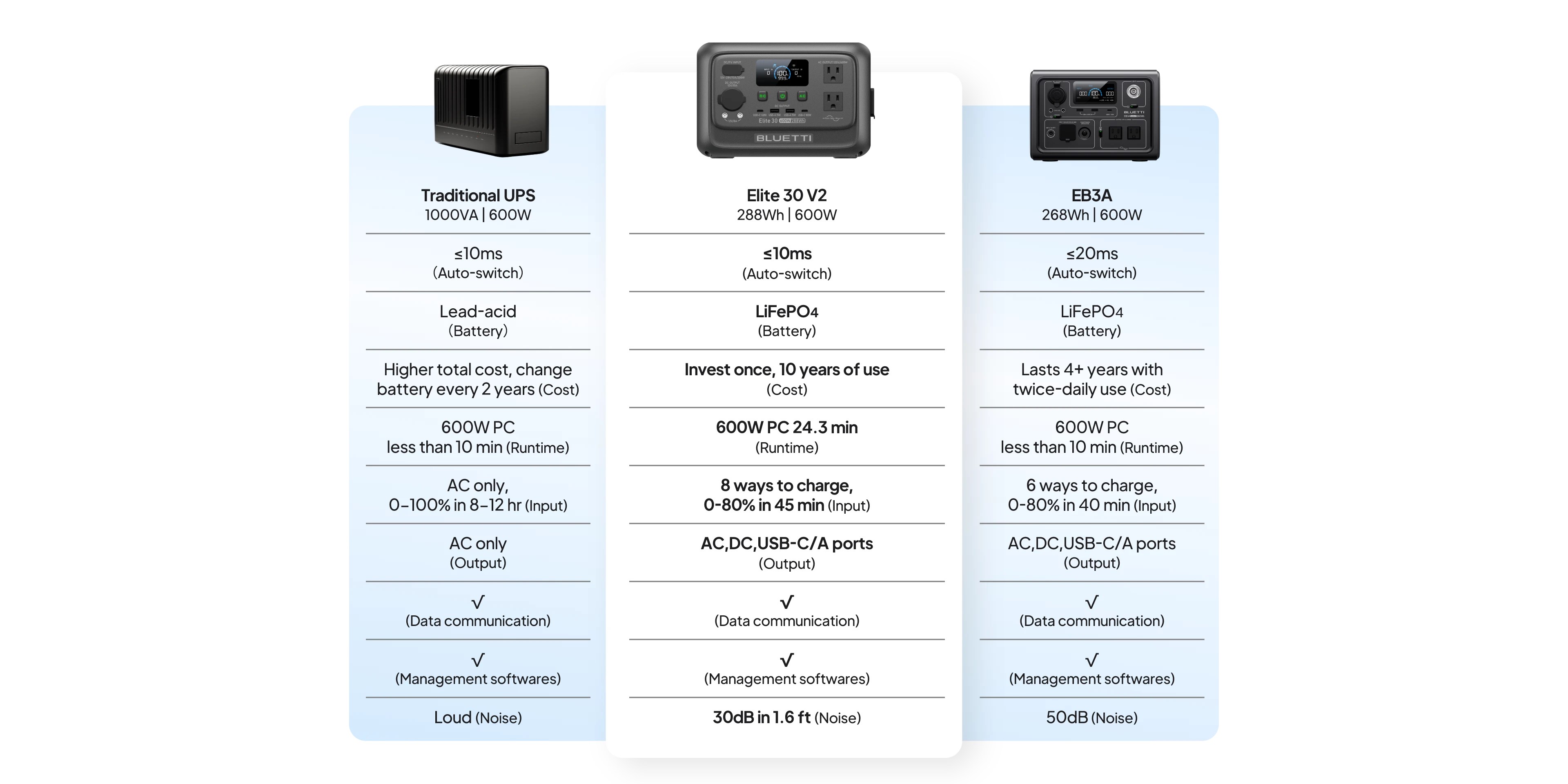 The Elite 30 V2 gives you 9 output ports and a reliable 600W continuous supply—perfect for running multiple small devices at once. Elite 30 V2 also features a USB-C port with PD 3.1 protocol, delivering up to 140W output—enough to rapidly charge high-performance laptops like MacBook Pro."
